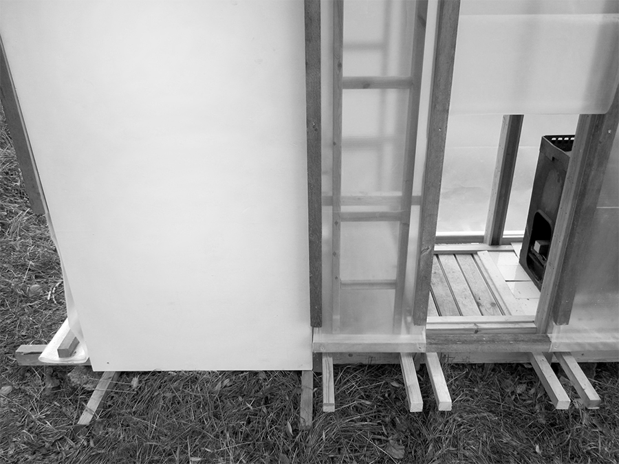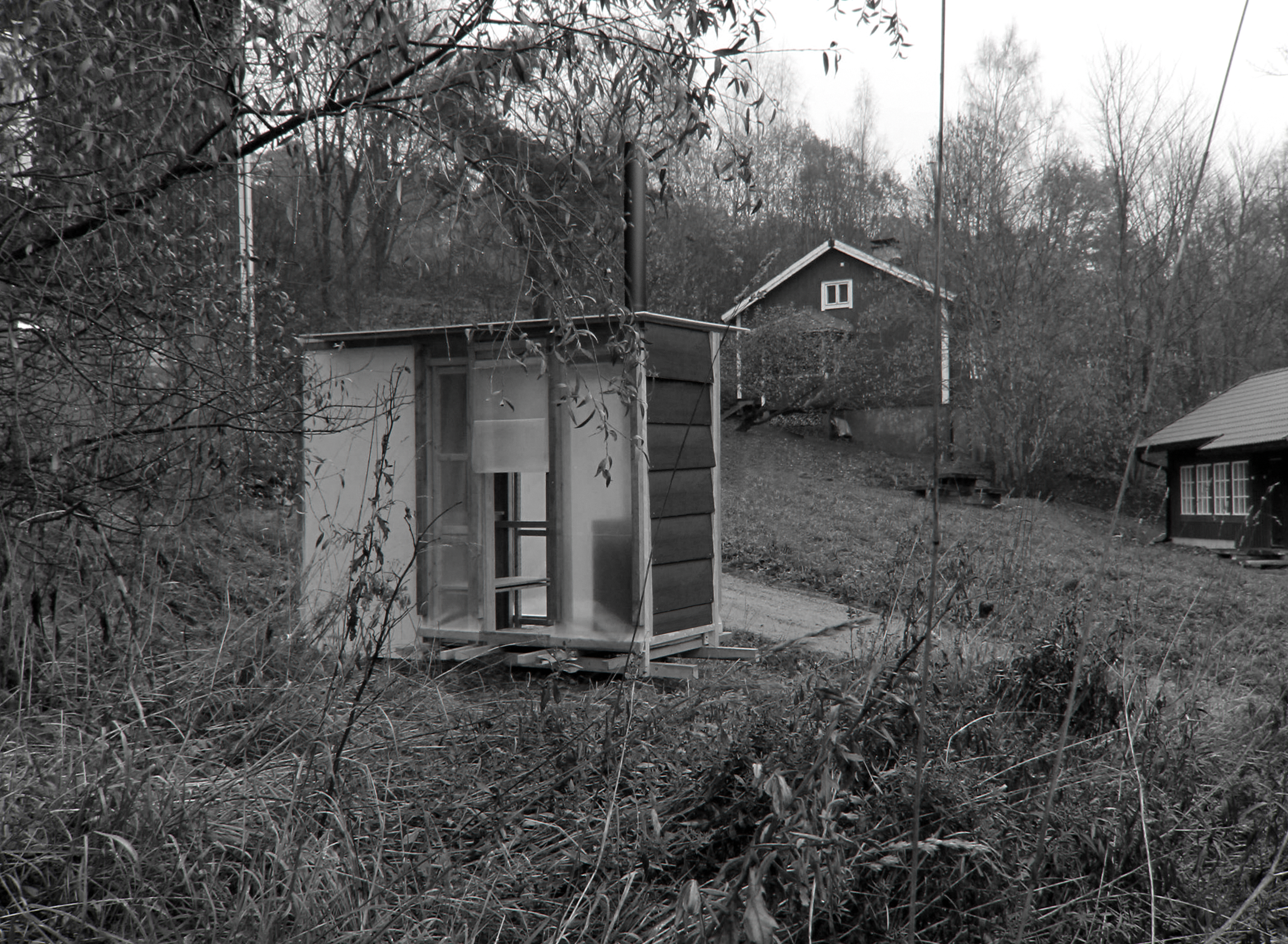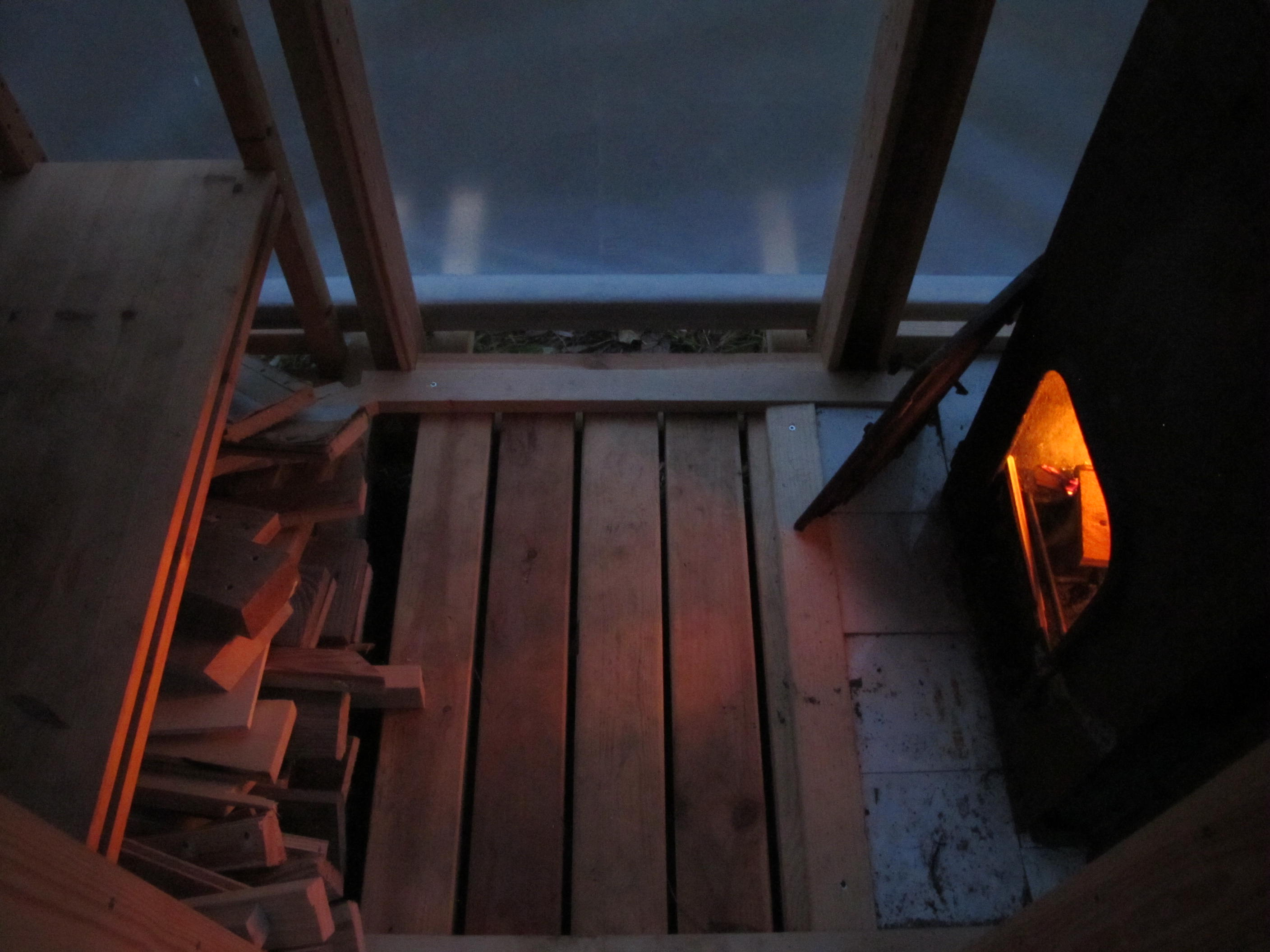 Ikea shelves, desk tops, found sauna stove and some donation wood from Mikko